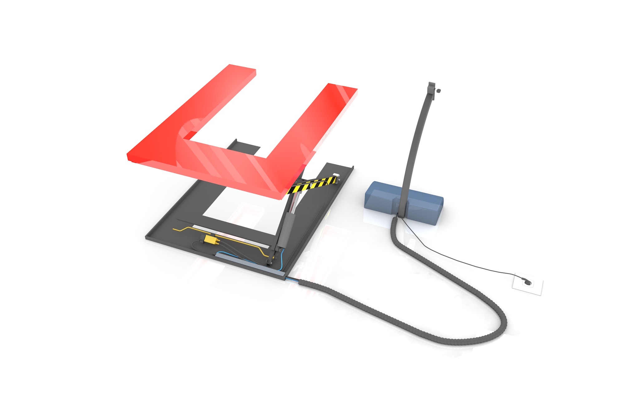 Platformun kaldırılması  kumanda paneli üzerinden elektrik sayesinde gerçekleştirilir. 1200 mm platform genişliği 1700 mm platform uzunluğu 2000 mm tabla kaldırma yüksekliği 2.2 kw kaldırma motoru 4000 kg taşıma kapasitesi